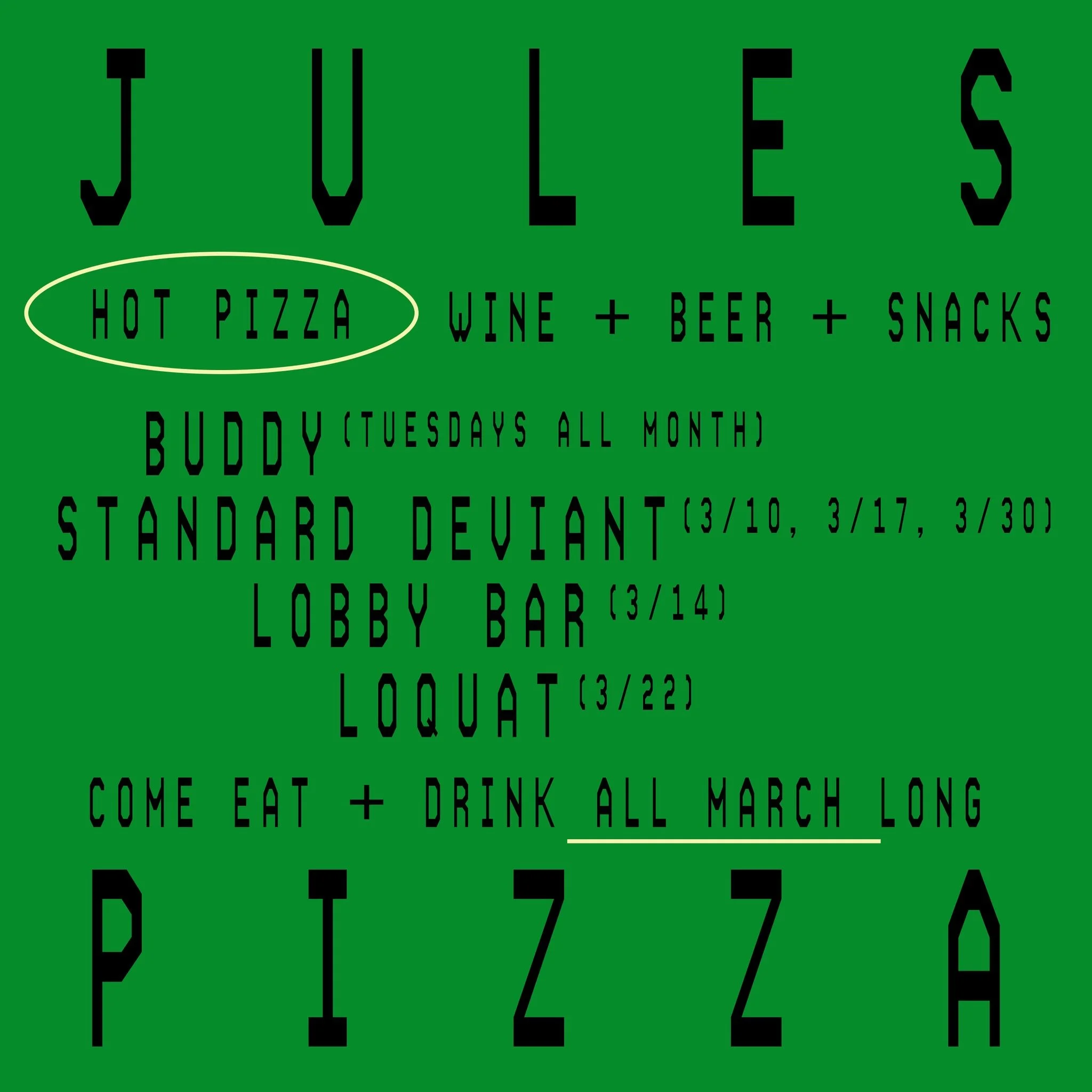 Started a pizza restaurant with my partner, named after 2 of our grandmas who share the same name — Jules (@jules.pza). We’ve been written up in Eater, Resy, and SFGate. All dough by him, all art by me.